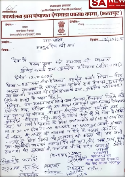 जब यह प्रार्थना संत रामपालजी महाराज के चरणों में पहुंची, तो उन्होंने तुरंत और सीधे तौर पर सभी आवश्यक सहायता प्रदान करने का आदेश दिया। अन्नपूर्णा मुहिम के तहत, संत रामपालजी महाराज ने मांगी गई सामग्री का पूरा सेट भेजा। सरपंच प्रतिनिधि, मान सिंह ने बताया, “हम सतलोक आश्रम 9 तारीख को गए थे, आज 15 तारीख है। सिर्फ पाँच दिनों में, सारी सामग्री, मोटरें, पाइपलाइन, जेनरेटर, सब कुछ आ गया है।”
