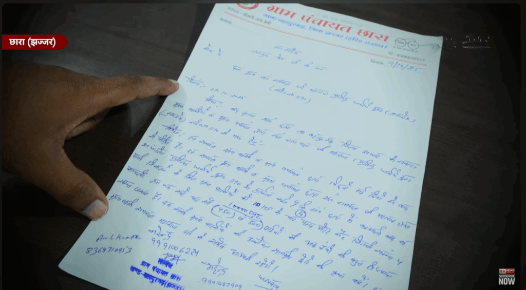 9 अक्टूबर को छारा गांव की पंचायत, सरपंच प्रतिनिधि दीपक जी के नेतृत्व में, एक निवेदन लेकर संत रामपाल जी महाराज से प्रार्थना करने के लिए उनके ट्रस्ट के ऑफिस पहुंचे। उन्होंने ग्राम पंचायत के लेटरहेड पर एक निवेदन पत्र जगतगुरु तत्वदर्शी संत रामपाल जी महाराज को संबोधित कर लिखा, जिसमें मांगा गया था —