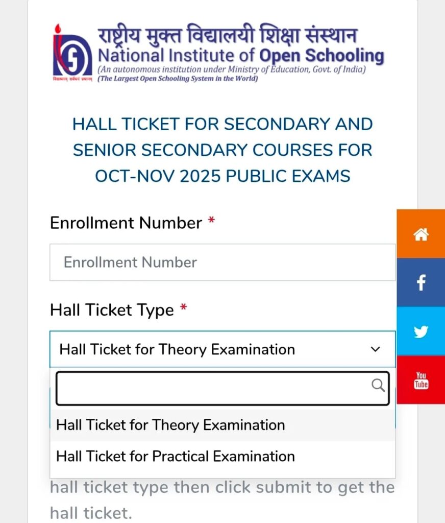 Follow these simple steps to download your NIOS Class 10 and Class 12 hall ticket: