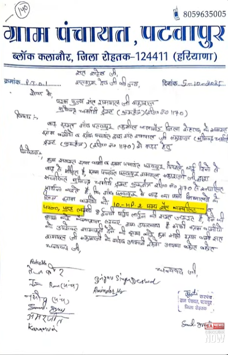 पटवापुर पंचायत बरवाला आश्रम पहुँची। गाँव के सरपंच प्रतिनिधि सुनील ढोल ने वहां बताया कि खेतों में तीन फुट से अधिक पानी भरा है, धान की फसल नष्ट हो चुकी है और गेहूं बोना मुमकिन नहीं। उन्होंने संत रामपाल जी महाराज के चरणों में 2 मोटर (10 HP) और 4400 फुट पाइपलाइन की औपचारिक प्रार्थना प्रस्तुत की। वकीलों ने आश्वासन दिया कि जैसे ही गुरुदेव का आदेश मिलेगा, सारा सामान पटवापुर पहुँचाया जाएगा।
