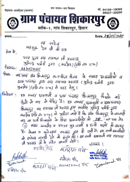 जब हर ओर से निराशा थी, तब गांव के सरपंच रोहताश अलाडिया और पूरी पंचायत ने मिलकर निर्णय लिया कि वे सतगुरु रामपाल जी महाराज से मदद मांगेंगे। रायपुर गांव के एक निवासी ने बताया कि सतगुरु जी बाढ़ग्रस्त गांवों की सहायता कर रहे हैं। पंचायत ने बरवाला आश्रम जाकर एक प्रार्थना पत्र सौंपा, जिसमें मांगी गई सहायता थी: